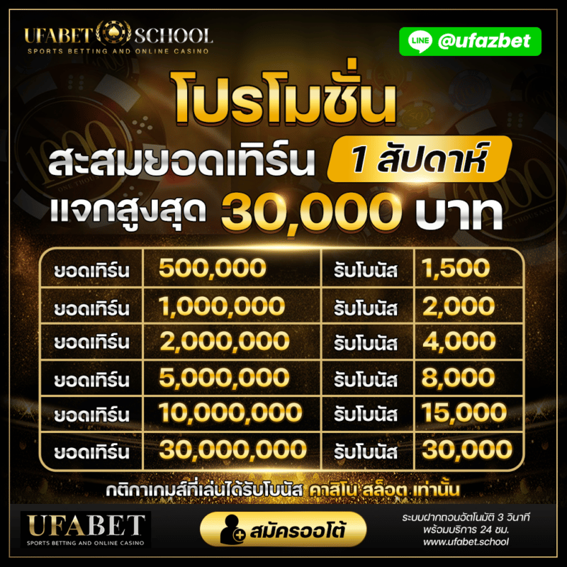 ข้อกำหนดและเงื่อนไขโปรโมชั่นอาจมีการเปลี่ยนแปลงโดยไม่ได้แจ้งให้ทราบล่วงหน้า หากมีข้อสงสัยหรือต้องการสอบถามเพิ่มเติมเกี่ยวกับโปรโมชั่นต่าง ๆ กรุณาติดต่อเจ้าหน้าที่ผ่านทาง Line: @ufazbet ได้ตลอด 24 ชม.